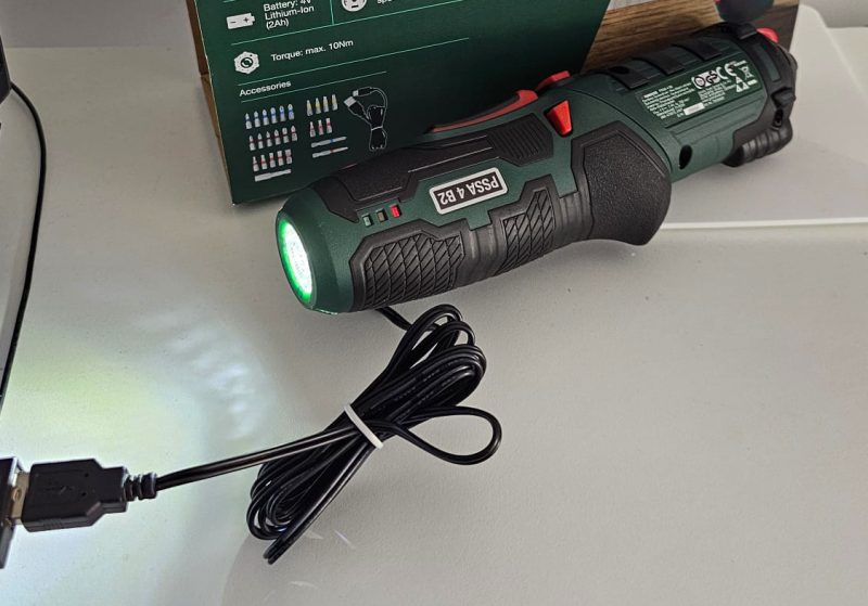 Se încarcă la usb, e 4V si 2Ah (adică poți folosi un încărcător de-al tău de acasă de 5V și 1 sau 2 Amperi cum au multe ceasuri smart sau telefoanele mobile), vine cu 26 de capete ce se atașează magnetic în vârf, are rotire de înșurubare și deșurubare, lanternă led și un cuplu de 10 Nm (Newton-metru). Asta face șurubelnița perfectă pentru lucrări mici spre medii. Pentru a înșuruba un șurub mai mare într-o placă mai solidă de lemn, s-ar putea să ai nevoie de o bormașină mai puternică cu un cuplu de cel puțin 20 spre 60 Nm.